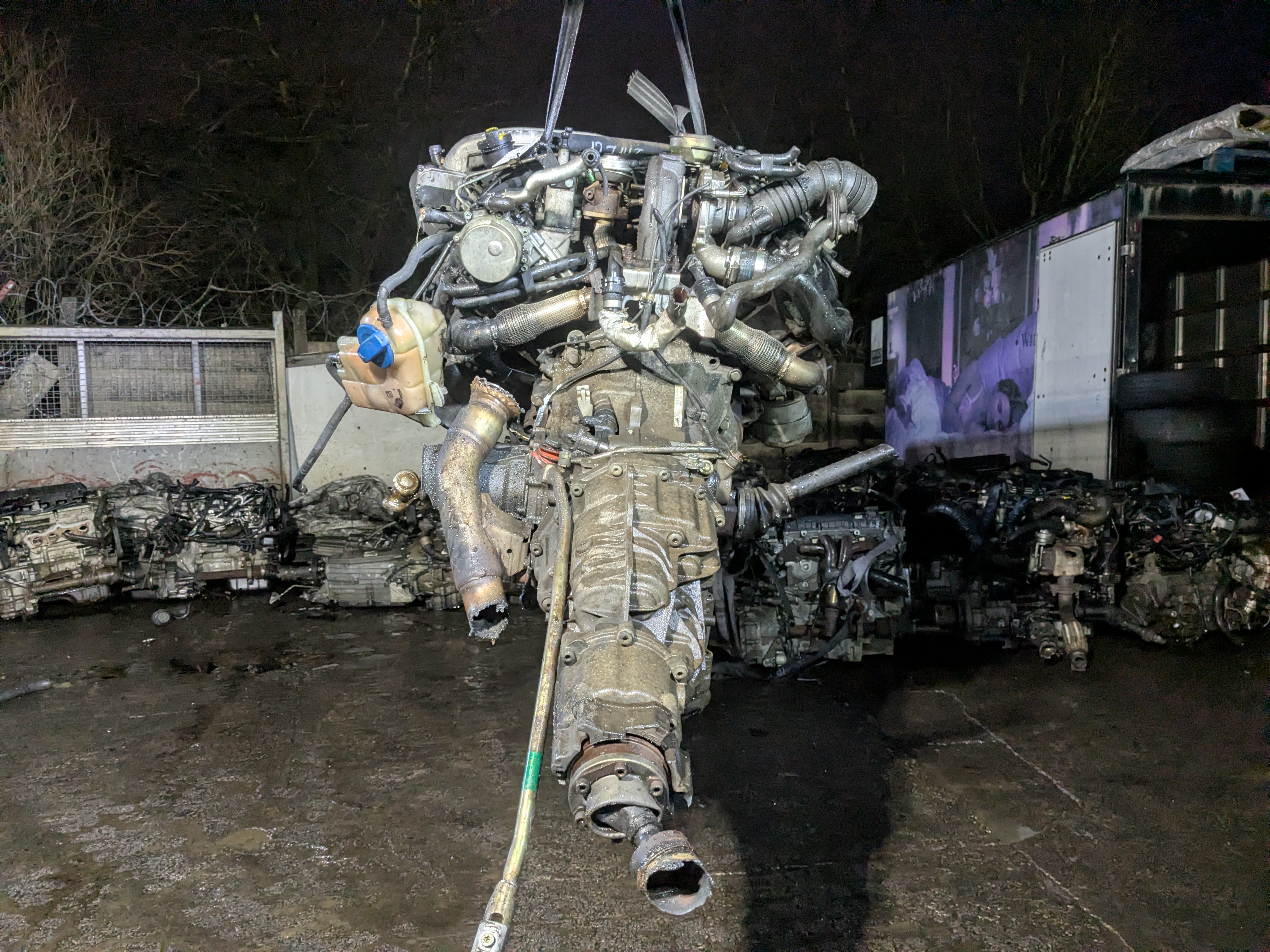 All our engines come complete with gearbox (manual or automatic) and all the other parts such as turbo, alternator, starter, injectors, etc. We turn all engines manually to test compression in all the cylinders, check turbo for excessive oil and movement (if accessible), or antifreeze in oil and external damage.
