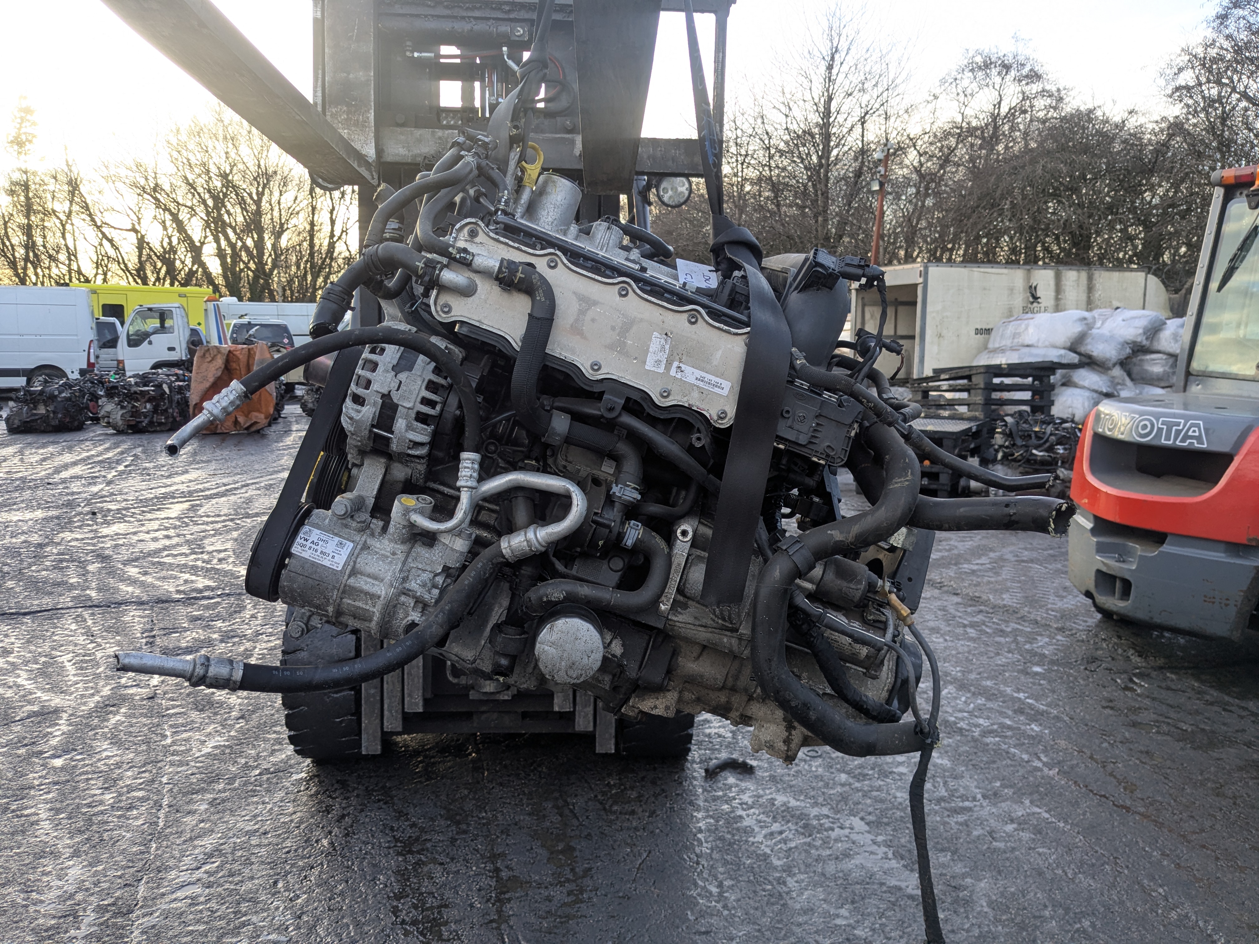 All our engines come complete with gearbox (manual or automatic) and all the other parts such as turbo, alternator, starter, injectors, etc. We turn all engines manually to test compression in all the cylinders, check turbo for excessive oil and movement (if accessible), or antifreeze in oil and external damage.