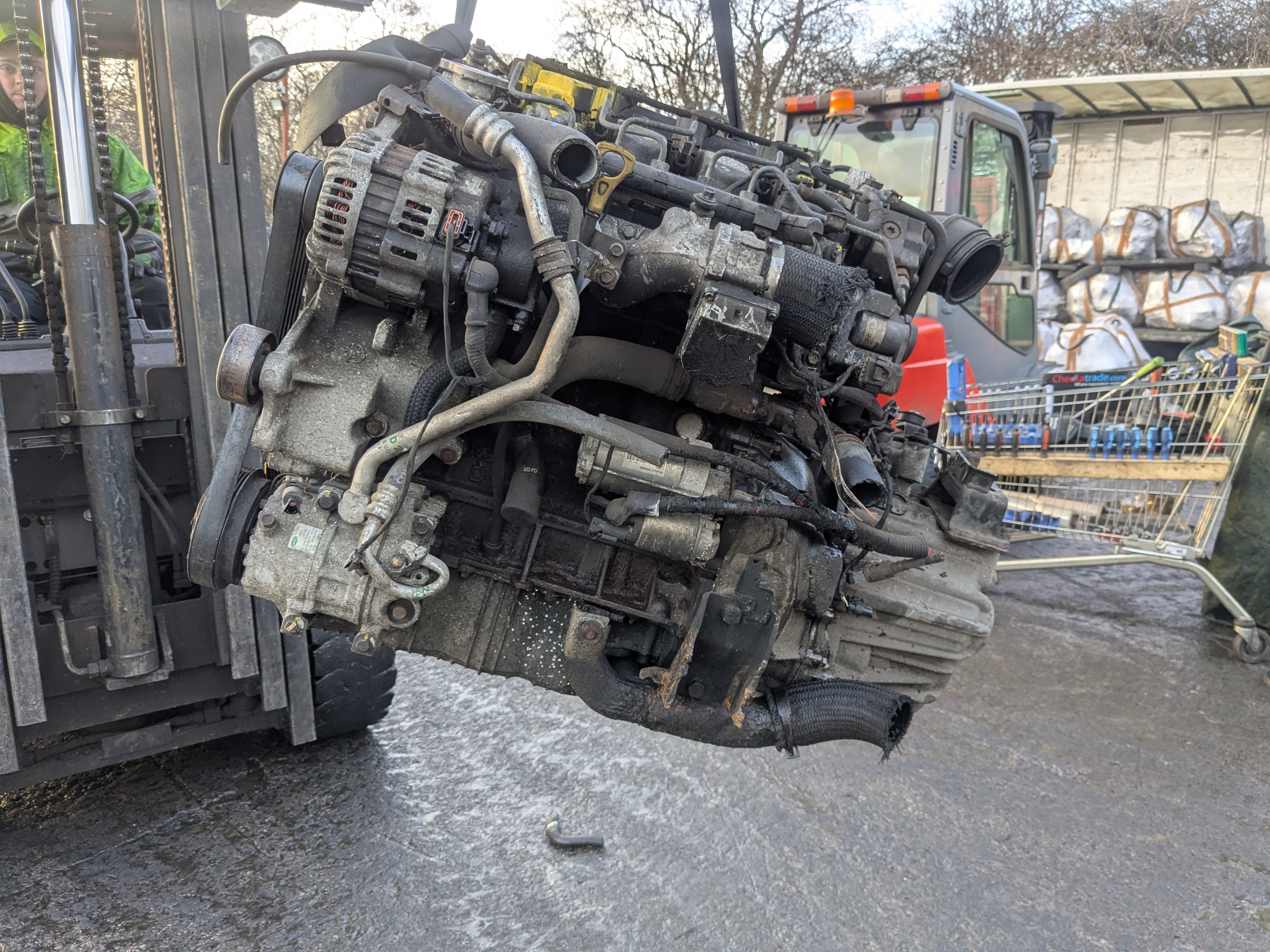 All our engines come complete with gearbox (manual or automatic) and all the other parts such as turbo, alternator, starter, injectors, etc. We turn all engines manually to test compression in all the cylinders, check turbo for excessive oil and movement (if accessible), or antifreeze in oil and external damage.